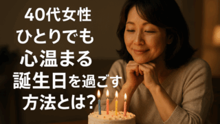 40代女性に向けた「ひとりでも心温まる誕生日の過ごし方」をご紹介。自分へのご褒美アイデアやおすすめプラン、思い出の残し方まで、ひとり時間を特別に楽しむヒントをまとめました。
