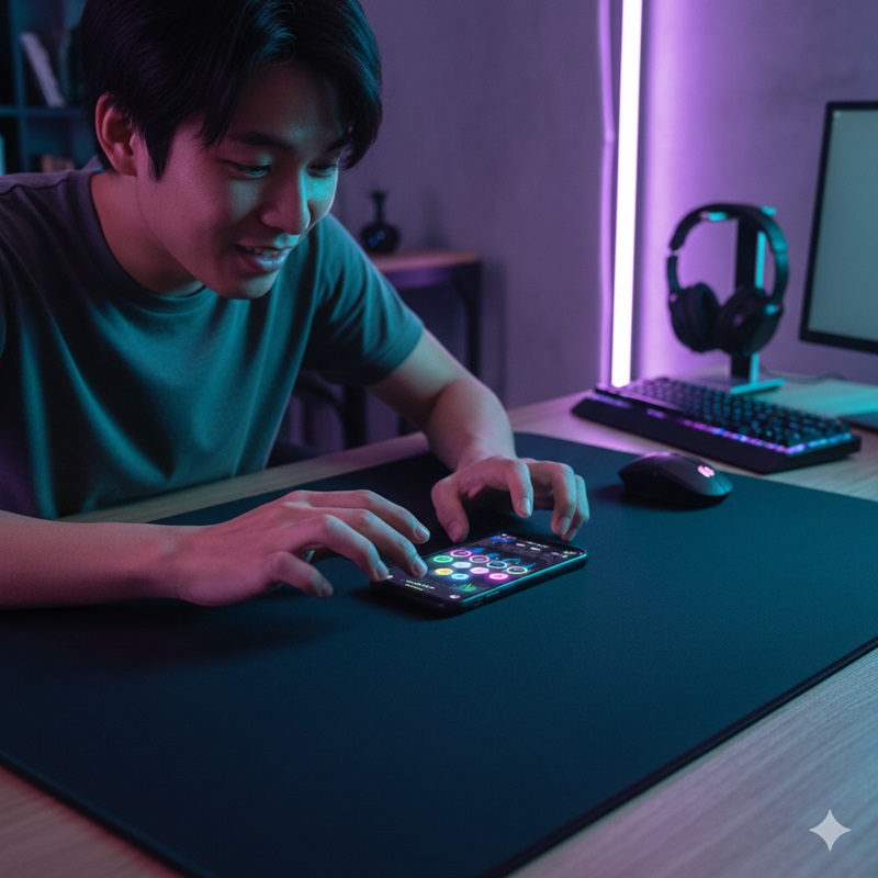 特にマウスパッドメーカーなどが手掛けるシリコンシートは、表面が非常にフラットで、スマホ背面との真空状態を作り出すため、激しい縦連打でもビクともしません。